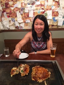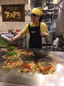 Okonomiyaki – This is a famous dish in Osaka (although Hiroshima has its own style that is also well-known). It is basically a savory pancake with pork or seafood inside. They have hot griddles that they cook on in front of you so it is part entertainment and part dinner. Usually it is not very expensive either. The famous chain in Osaka is called Kiji. I actually think there is better Okonomiyaki at many places so I would check various food blogs or websites to determine which one is best for you (or close to your hotel) when you are there. You can absolutely eat it in Tokyo as well if that is easier. It is just famous in Osaka. In Hiroshima it is also famous with the difference being that they put noodles in theirs (picture on right).