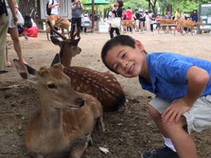 From JR Nara Station you can walk up the main drag toward Kintetsu Station. There are a couple of smaller temples to see but the highlight on the walk will be the big grassy area (Nara Park) outside Kintetsu Nara Station. There are deer everywhere that are very docile. Good for pictures and you can buy snacks to feed them from vendors on the street.