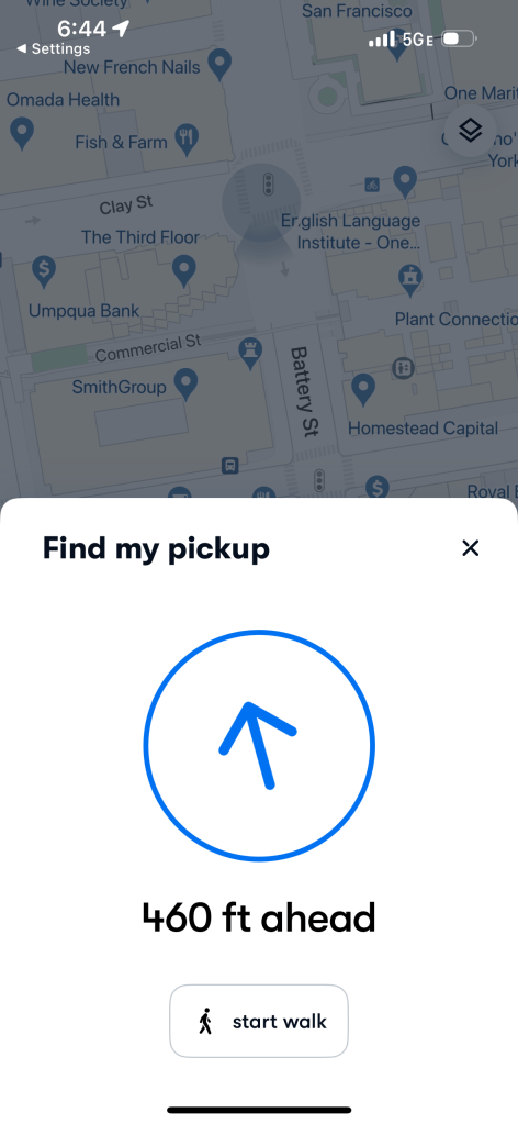 One thing that was not ideal is that we had to take a short walk to our pickup spot (1-3 blocks) for both rides. There are clearly safer spots for Waymos to pull over and pick you up, so they choose the closest place that will allow for an easy entry. This was not a big deal on a beautiful evening but I can see it being a minor inconvenience on a night when it is luring rain. They also provide you with directions and a compass-like arrow telling you exactly where to go.